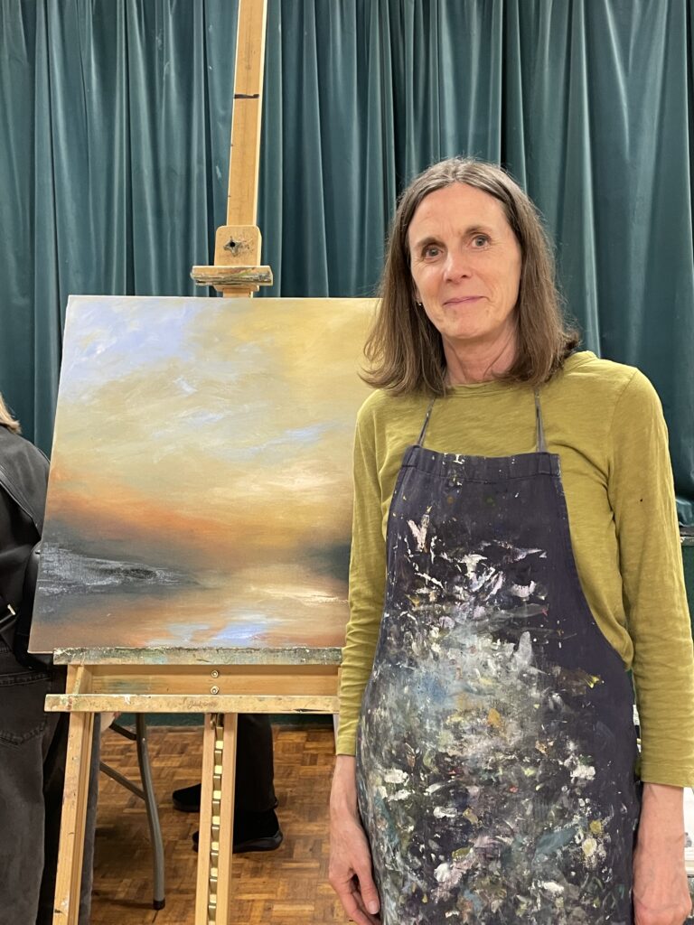 We hold a year round programme of talks and demonstrations by professional artists with occasional day-long workshops. We have ‘painting together’ sessions and outside painting and sketching sessions in the summer. These are usually held with somewhere for lunch or tea nearby! In the winter, some members also meet weekly to paint together every Tuesday morning from 10am. to 12pm.