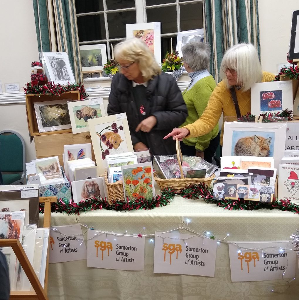 The SGA took part in the ACE Christmas Fair in the Somerton Parish Rooms to celebrate the Christmas lights being switched on. The whole of Somerton seemed to be there and lots of people stopped by to chat and ask questions about out art group. All good fun and great to feel a real part of the town.